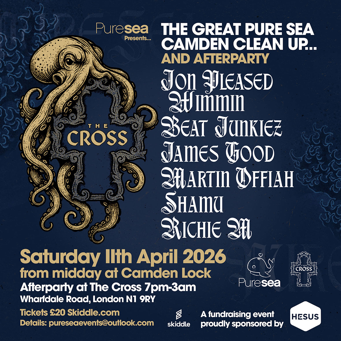 The Great Camden Clean Up and fundraising AFTERPARTY at The Cross London. Jon Pleased Wimmin join Pure Sea Residents.